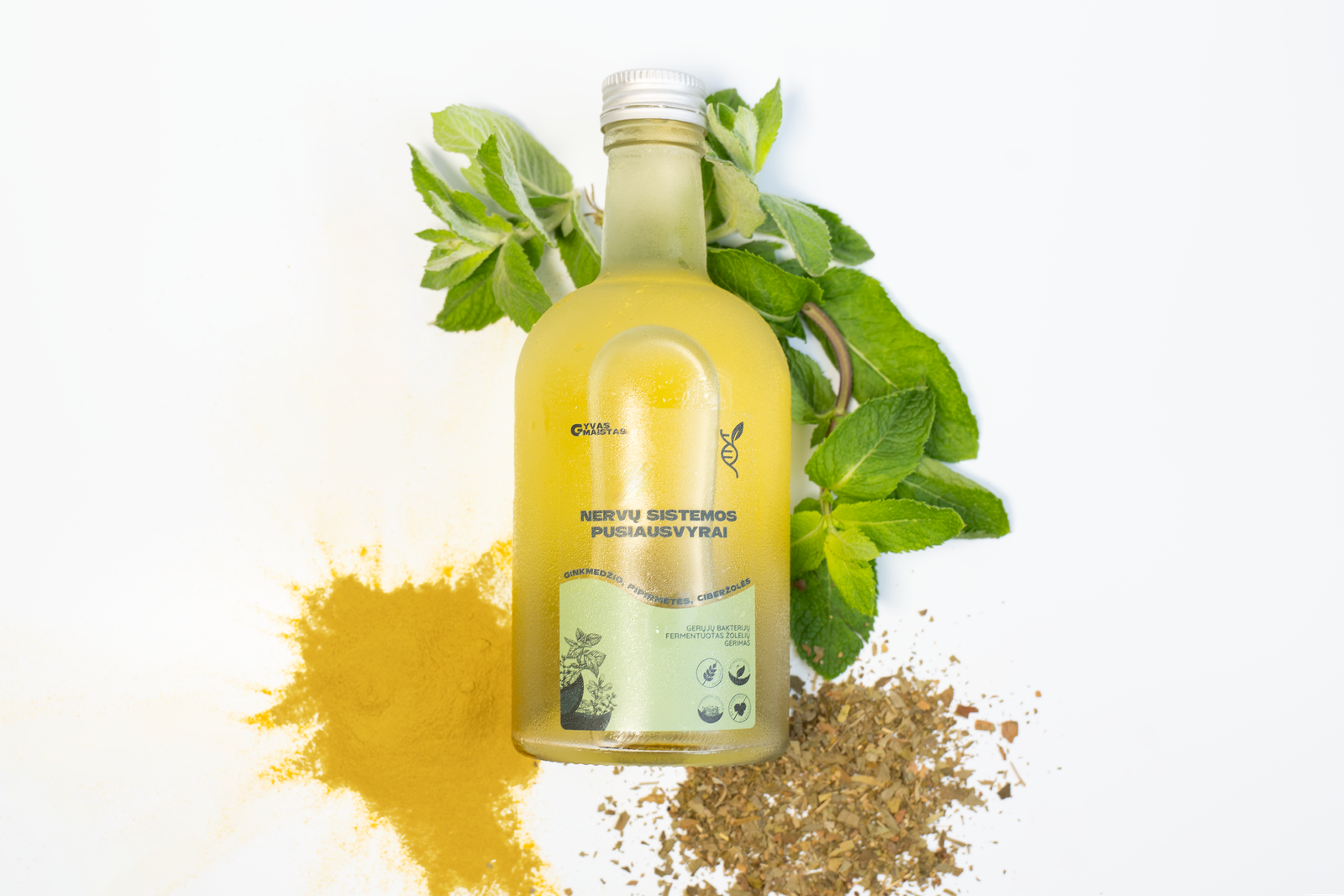 - Ginkmedžio lapai: Žinomi dėl kraujotakos gerinimo ir koncentracijos skatinimo.