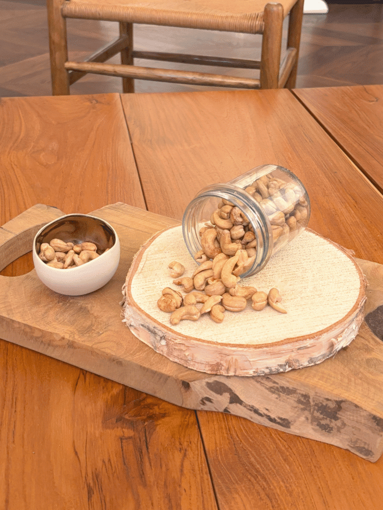 🌿 Graikiniai riešutai mirkomi 6–8 valandas, tokių kaip magnis, cinkas ir fosforas, įsisavinimą. Po mirkymo jie švelniai skrudinami žemoje temperatūroje (120–140°C), išsaugant jų gerąsias riebalų rūgštis ir antioksidantus.
